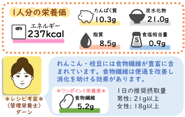 レンコン、枝豆は食物繊維が豊富に含まれています。