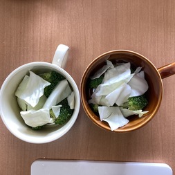 耐熱カップに①と★を入れラップをし、600Wで3分30秒加熱する。