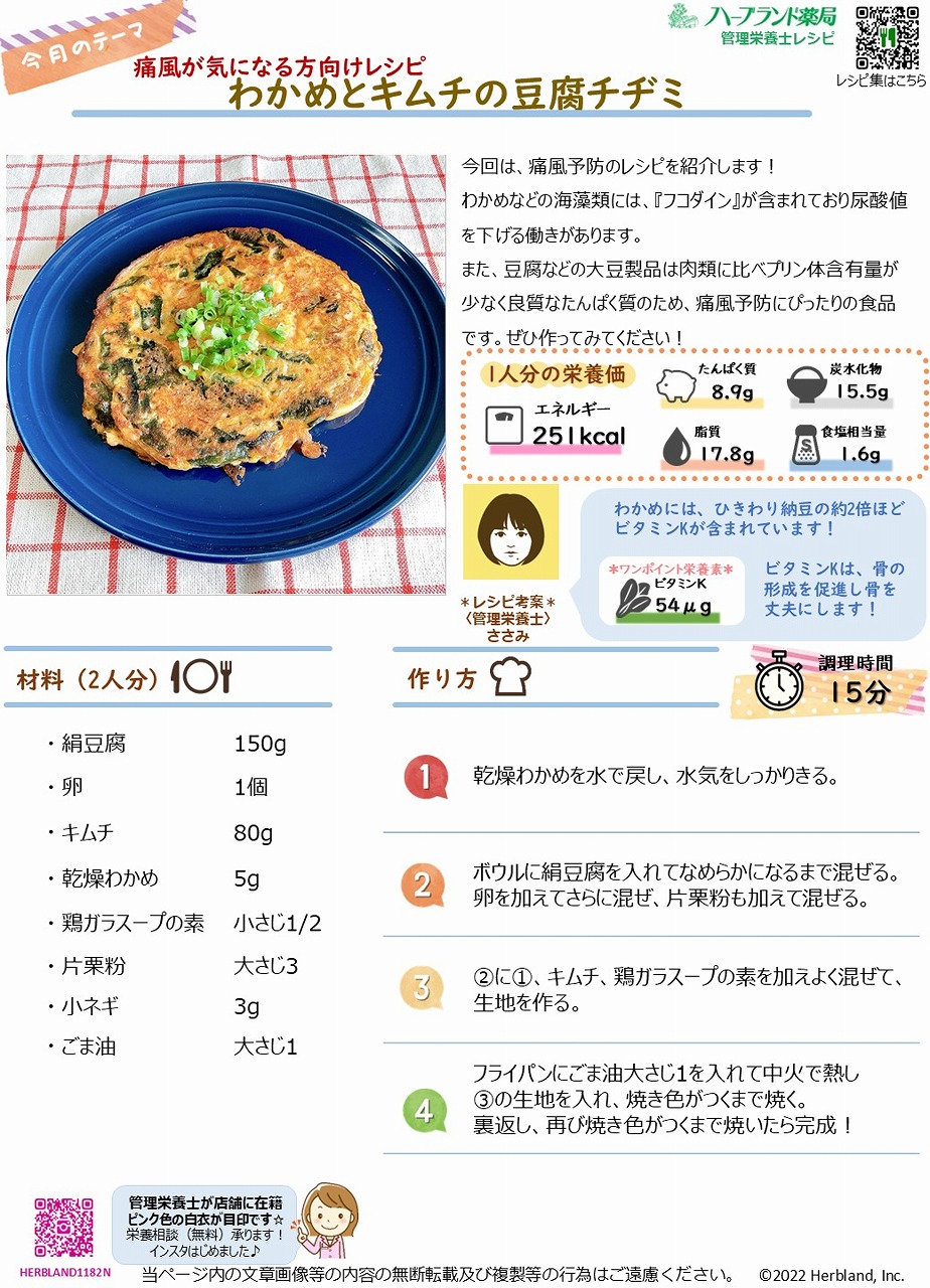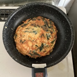 わかめとキムチの豆腐チヂミ