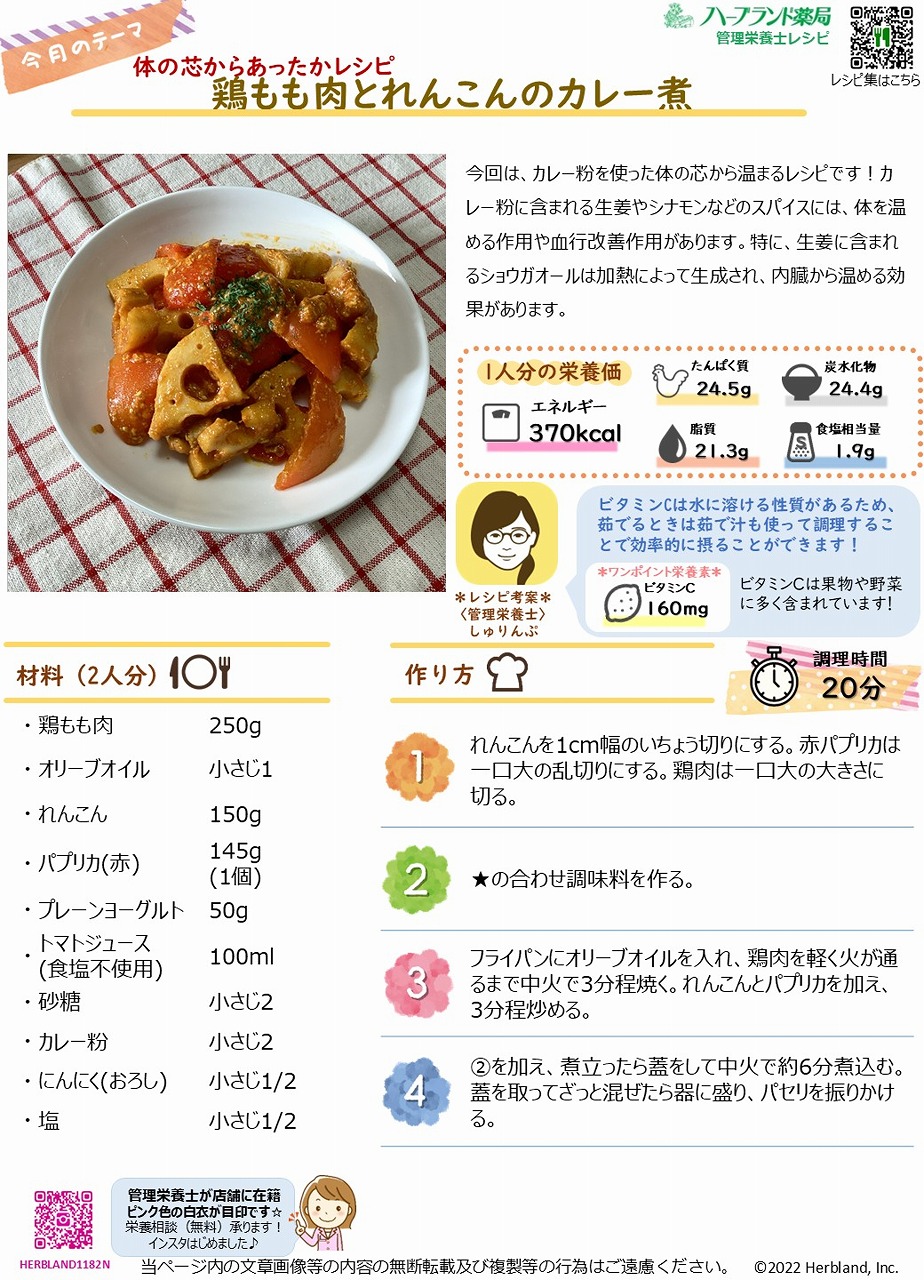 今回は、カレー粉を使った体の芯から温まるレシピです!