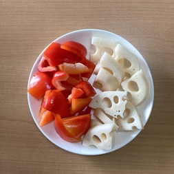 れんこんとパプリカを加え、3分程炒める。