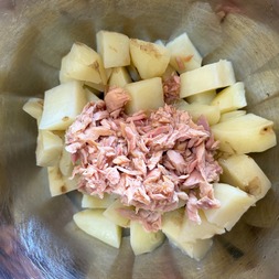 ①の粗熱が取れたらツナ缶と★を加え、じゃがいもを潰しながら混ぜ合わせる。