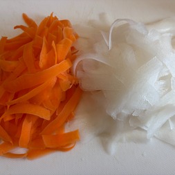 大根は2cmの幅にピーラー等で麺状にする