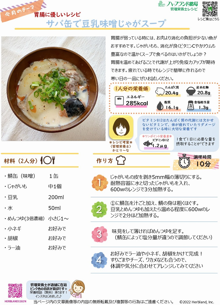 サバ缶で豆乳味噌じゃがスープ